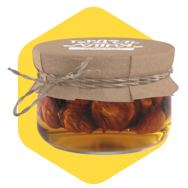 Фундук — орех с плотной структурой и высоким содержанием витамина Е, белка и полезных жиров. В мёде он немного размягчается, но сохраняет характерный хруст и насыщенный вкус. Такой десерт не только вкусный, но и функционально полезный.